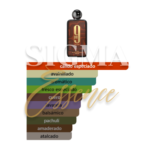 Finalmente, 9 PM Elixir se asienta sobre una base rica de vainilla, haba tonka y una pizca de tabaco amaderado. La vainilla y el haba tonka crean una capa de magnetismo persistente que dura muchas horas en la piel, asegurando una estela dulce pero con una fijación envidiable. Simultáneamente, el toque de tabaco aporta una estructura sólida y una profundidad varonil que evita que el dulzor sea excesivo. En conclusión, esta base es la responsable de la excelente duración y la proyección expansiva que caracteriza a esta creación. Gracias a su equilibrio, es una fragancia perfecta para eventos nocturnos, citas exclusivas y climas muy fríos.