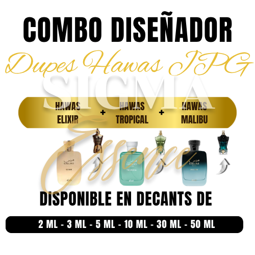 El combo Hawas de JPG es la máxima expresión del dominio olfativo inteligente, una colección que reúne las mejores reinterpretaciones de los perfumes más icónicos de Jean Paul Gaultier. Esta tríada, compuesta por Hawas Elixir, Hawas Tropical y Hawas Malibu, eleva el ADN de los “best-sellers” a un nivel de intensidad y accesibilidad sin precedentes. Es la opción ideal para el hombre que busca el magnetismo de Le Male Elixir, Paradise Garden y Le Beau Le Parfum, pero con la potencia característica de la línea Hawas. Ahora disponibles en decants desde 2 ml hasta 50 ml, para que el lujo te acompañe en cada paso.