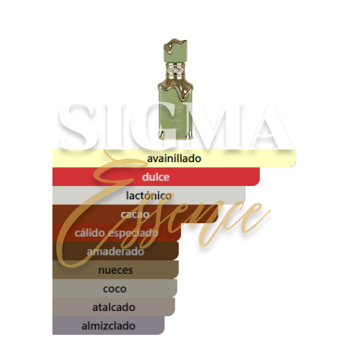 En el corazón de la fragancia, el perfume revela su verdadera identidad gracias a la infusión de coco, cacao y crema batida. El coco aporta un matiz exótico y aterciopelado, mientras que el cacao añade una profundidad oscura y elegante que eleva la composición a un nivel de sofisticación superior. Igualmente, la crema batida otorga esa sensación aireada y envolvente de lujo extremo, funcionando como el puente ideal hacia las notas profundas del secado. Adicionalmente, esta combinación única es la que genera esa estela pulcra y cremosa que cautiva a todos a su paso.