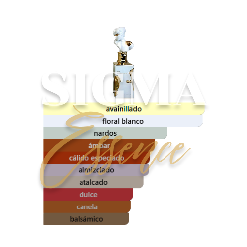 Finalmente, la fragancia se asienta sobre una base rica de vainilla, leche y almizcle. La nota de leche crea una capa de magnetismo suave y cremoso que asegura una fijación enviviable, fundiéndose con la piel de manera natural. Simultáneamente, la vainilla y el almizcle proporcionan una estructura sólida, pulida y acogedora que evita que el dulzor sea empalagoso, dándole un cierre robusto y distinguido. En conclusión, esta base es la responsable de la excelente duración y la proyección radiante que caracteriza a esta creación original.